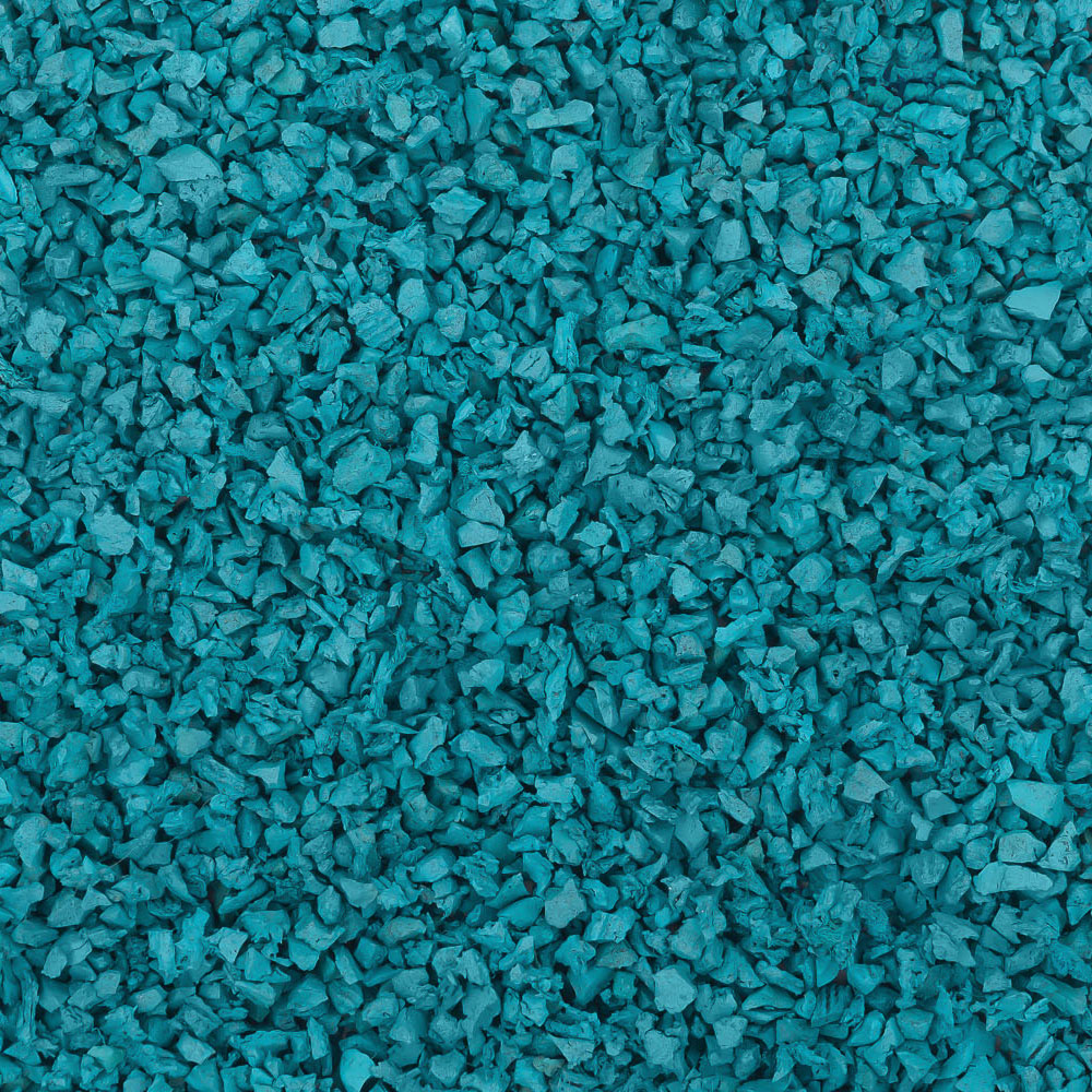 SBR-крошка голубого цвета — это окрашенный бутадиен-стирольный каучук, который сочетает в себе все достоинства каучукового покрытия и низкую стоимость за счет экономичной технологии производства. Материал создается из переработанных шин легковых и грузовых автомобилей, срок службы готового покрытия составляет 10-15 лет. SBR-крошка пользуется популярностью для благоустройства общественных пространств, пешеходных зон, спортивных объектов и детских игровых площадок.