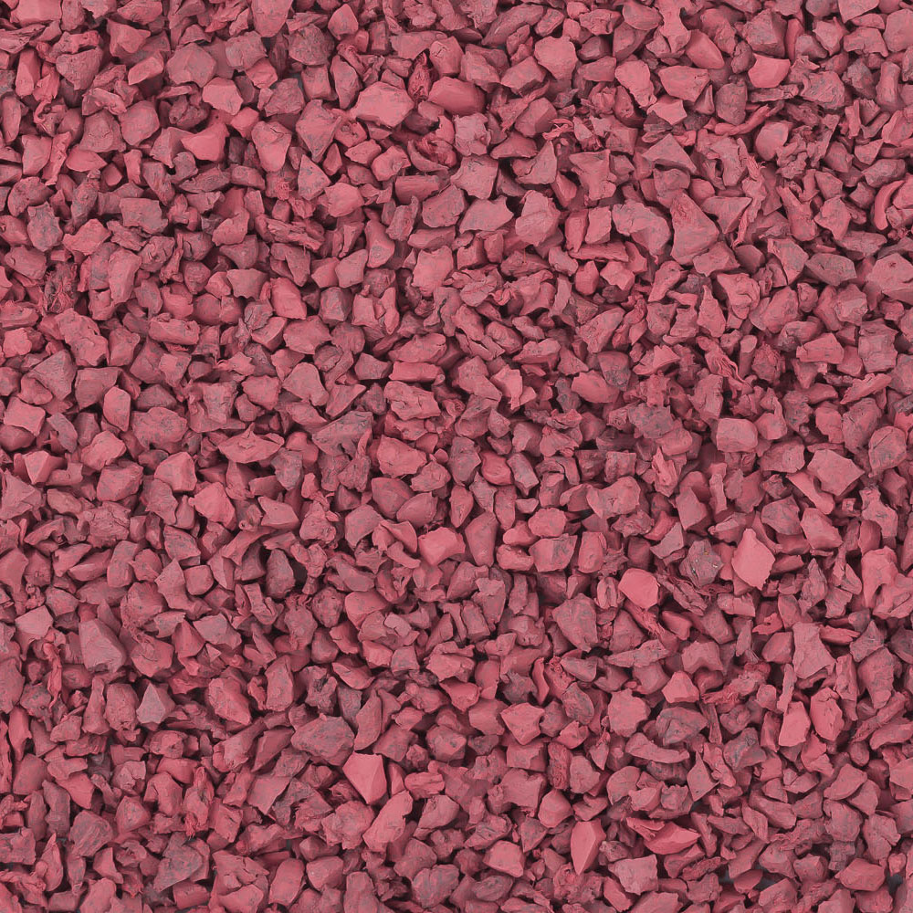 SBR крошка — это резиновый гранулят, который получают путём переработки автомобильных покрышек. Она бывает разных фракций — от 0.5 до 5 мм. Чтобы придать резиновому грануляту алый цвет, его окрашивают специальными стойкими пигментами. На детских и спортивных площадках крашеную крошку укладывают тонким слоем — поверх толстого слоя неокрашенного материала. SBR крошка алого цвета хорошо сочетается с гранулятом других оттенков. Все цвета резиновой крошки вы найдёте в каталоге.